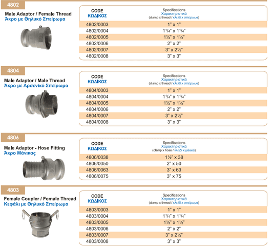 Άκρο Μάνικας με Αρσενικό Σπείρωμα μάνικα 2 1/2 '' χ σπείρωμα 2 1/2 '' Palaplast