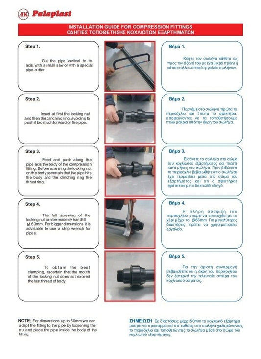 Τάφ Σύνδεσμος Ρακόρ Κοχλιωτό 10Atm Φ63 x Φ63 x Φ63mm Palaplast
